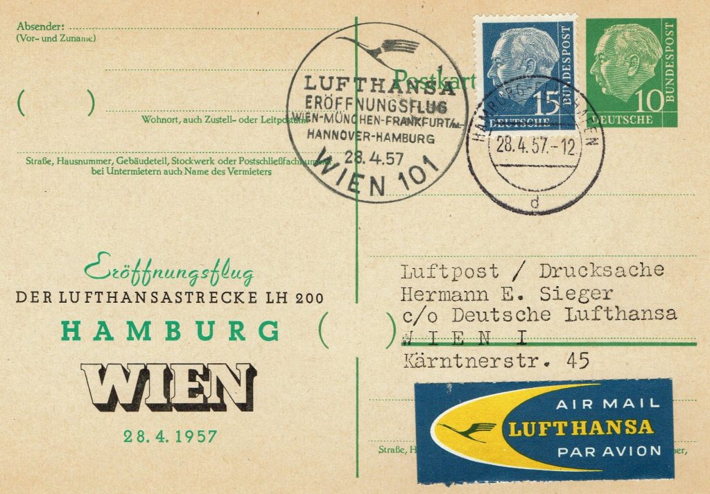 Die Wiederaufnahme des Flugverkehrs der Deutschen Lufthansa mit Erst- und Sonderflügen sowie national und internationale Streckeneröffnungen wurden in zahlreichen philatelistischen Belegen dokumentiert. Die Luftpostbriefe der Deutschen Lufthansa stellen als historische Dokumente begehrte Sammlerstücke dar.